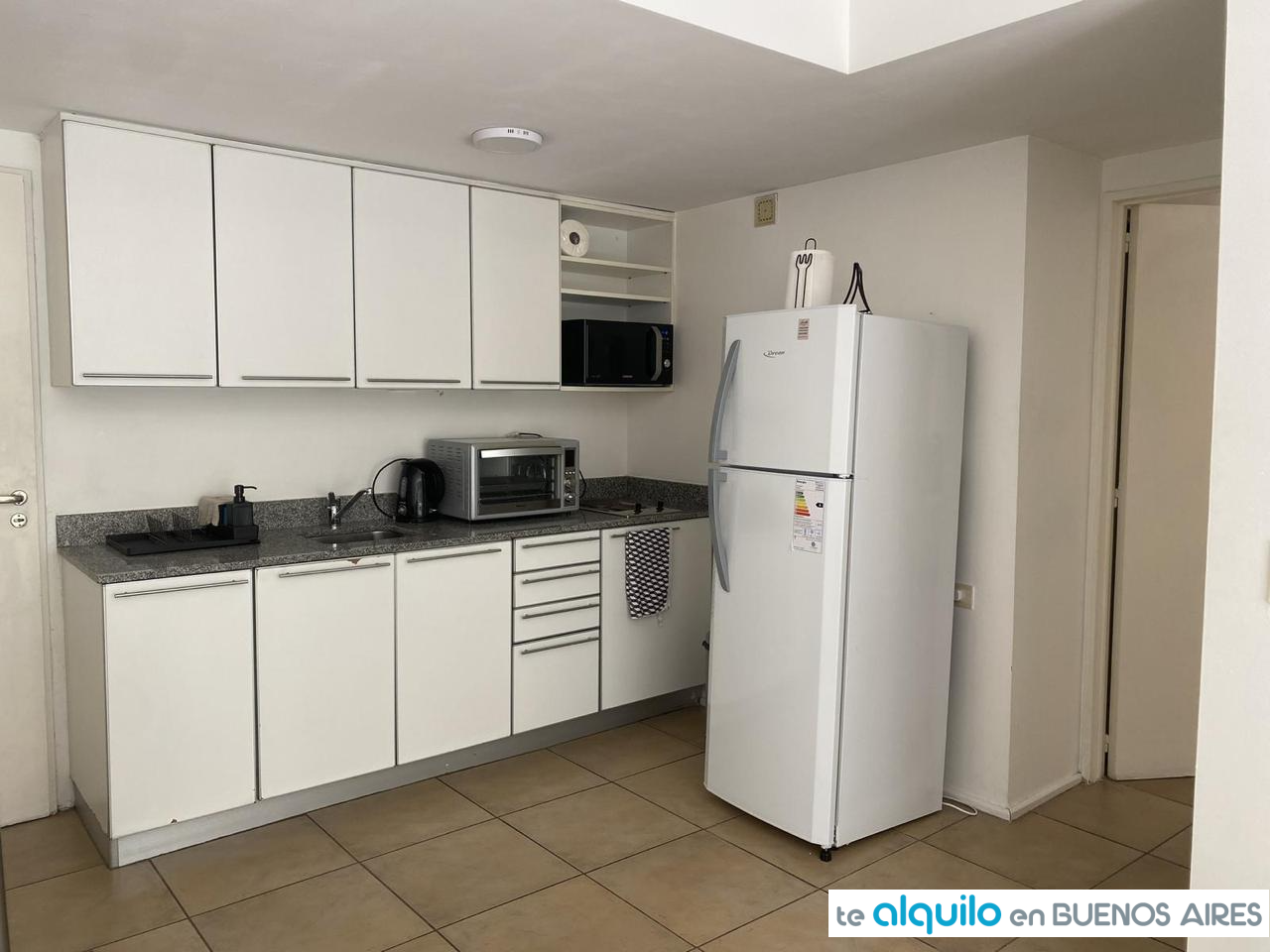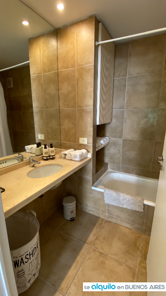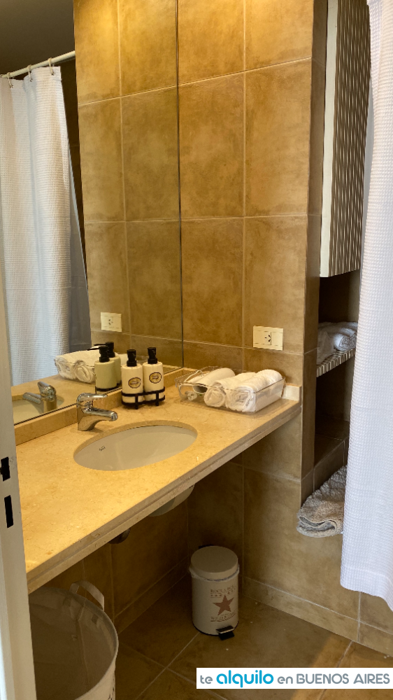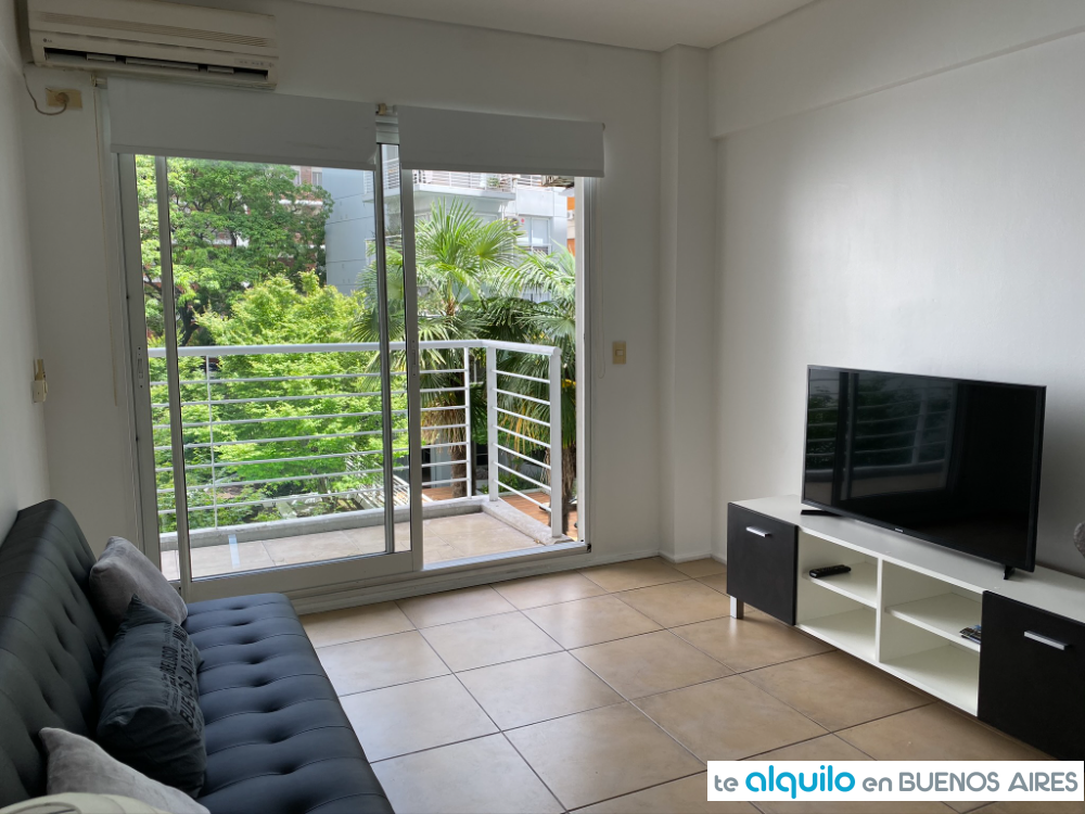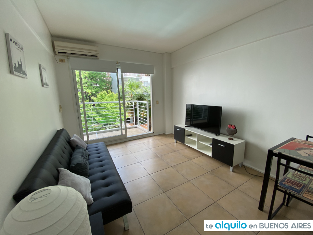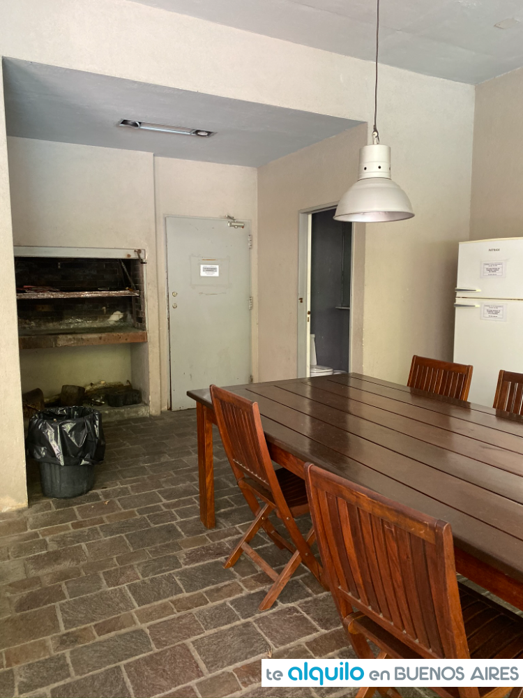 Cuenta con dos ambientes, al contrafrente, con balcón. Cocina integrada equipada con anafe eléctrico, horno eléctrico, microondas, tostadora, pava eléctrica, heladera bajo mesada, todo de primeras marcas.